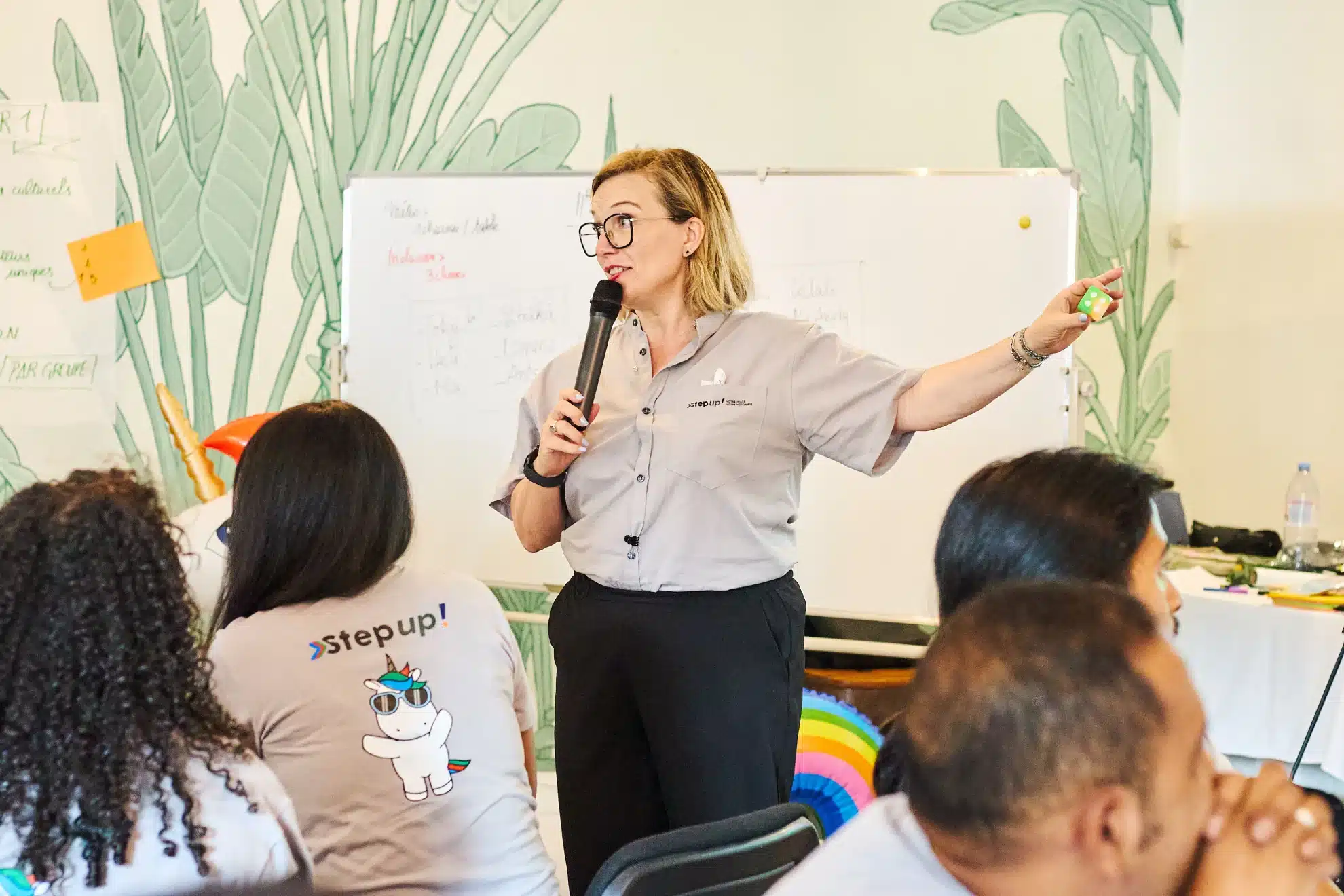 - Step up accompagne le développement dans l'entreprise et vous permet de mieux communiquer en interne et en externe. La dynamique de groupe fait partie intégrante des stages.